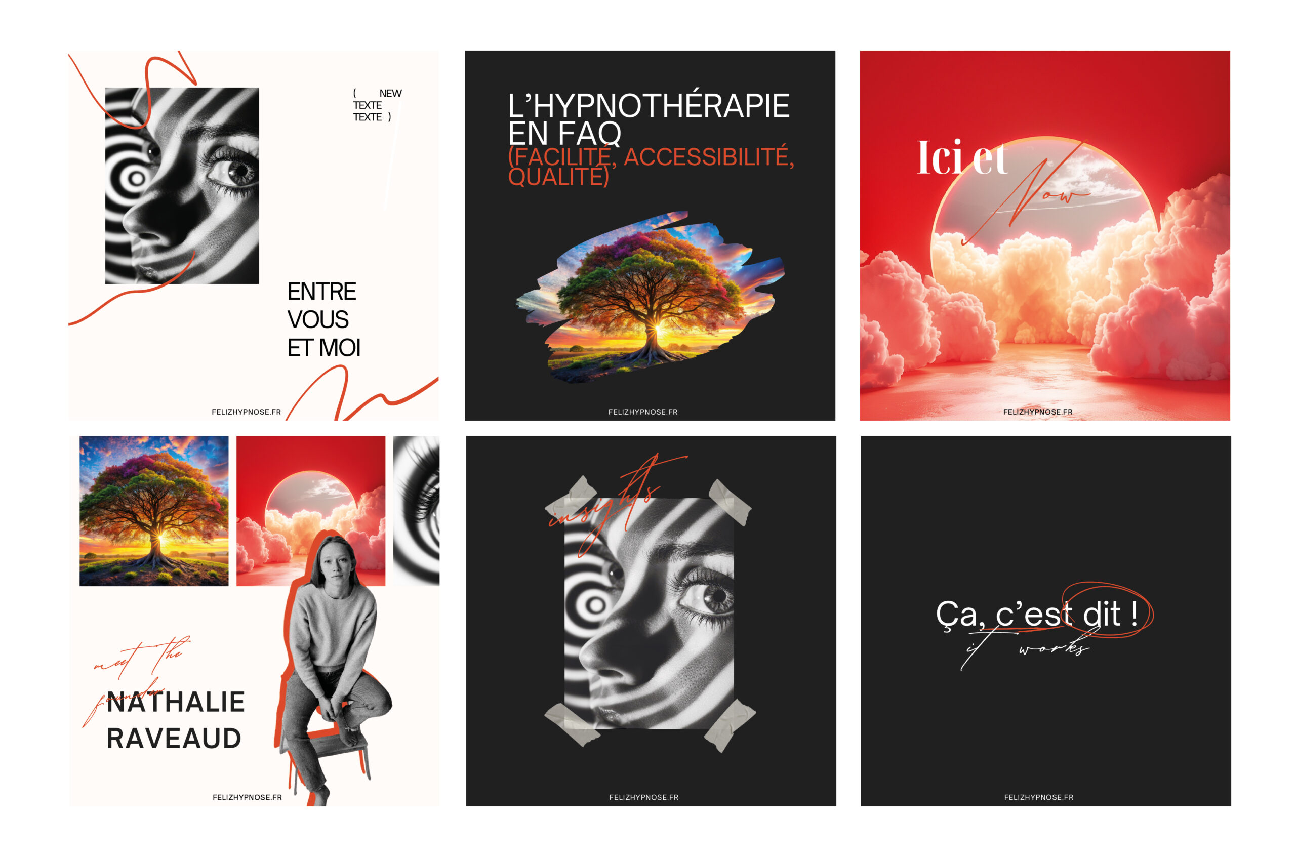 L’objectif : une communication cohérente, douce et impactante, qui reflète pleinement l’univers de Feliz Hypnoz et valorise son approche de l’accompagnement.