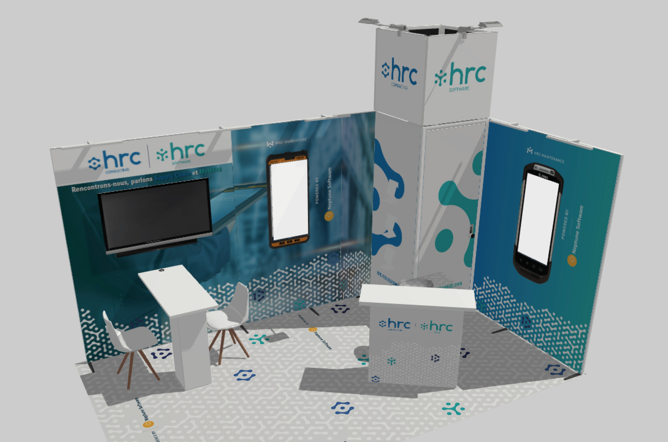C’est en fonction de l’activité de la société HRC Consulting que nous avons conçu son stand de salons professionnels.