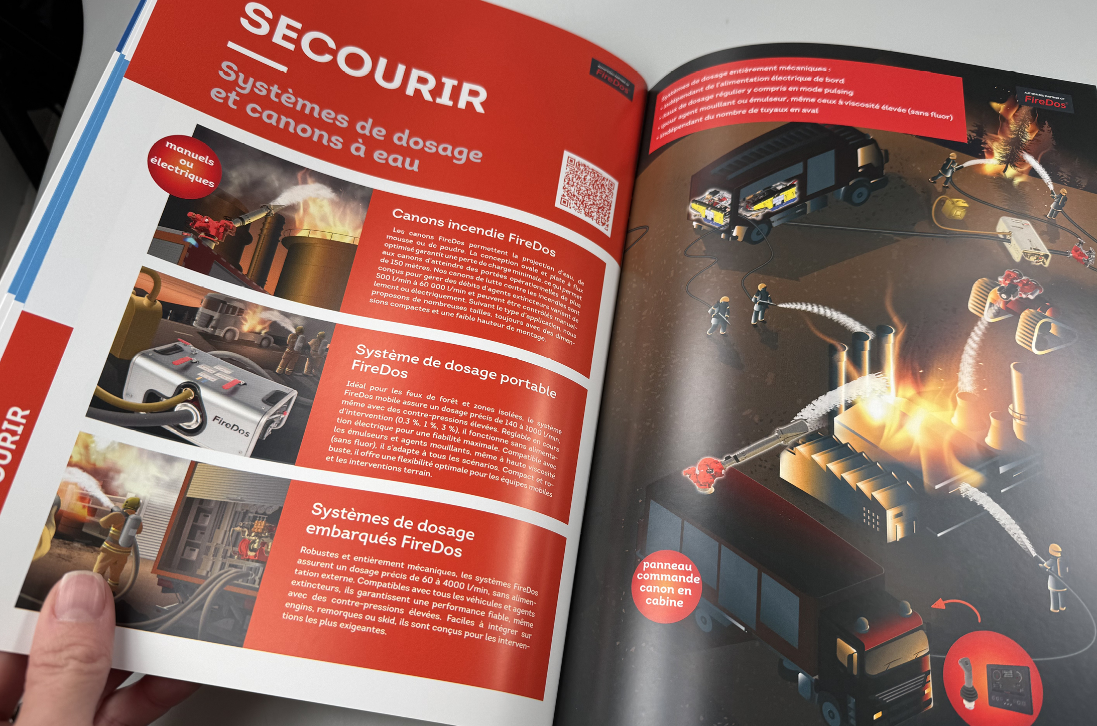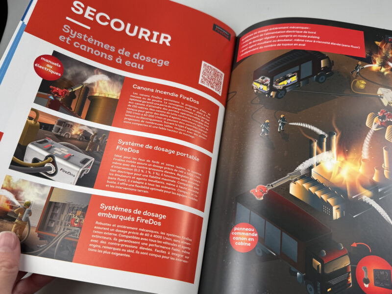 Nous avons ensuite décliné cette stylisation de flammèche sur les différents supports de communication, afin de les rendre cohérents avec l’image de l’entreprise. Ainsi, la flamme est venue lécher les visuels ou accroches de la pochette de présentation et des fiches produits.