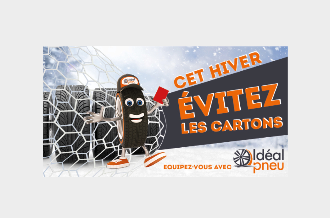 Pour mettre en avant l’action promotionnelle d’Idéal Pneu, nous avons conçu un visuel interpelant bien tous les clients potentiels et nous l’avons fait imprimer sur une bâche. Impossible de manquer la promo !
