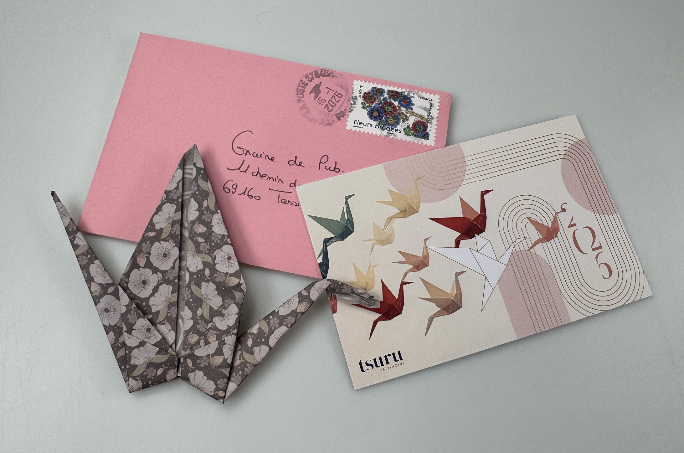 Pour Tsuru, on a bâti une vraie stratégie graphique, en se mettant à la place de ses clients : qu’attend-on d’un gestionnaire en patrimoine ? Bien évidemment, on veut qu’il fasse prendre son envol à la valeur de nos biens. Que signifie Tsuru ? C’est la grue en Japonais. Du coup, on a imaginé un oiseau façon origami pour son logo, symbolisant à la fois cette élévation et faisant le lien avec le nom de la société.